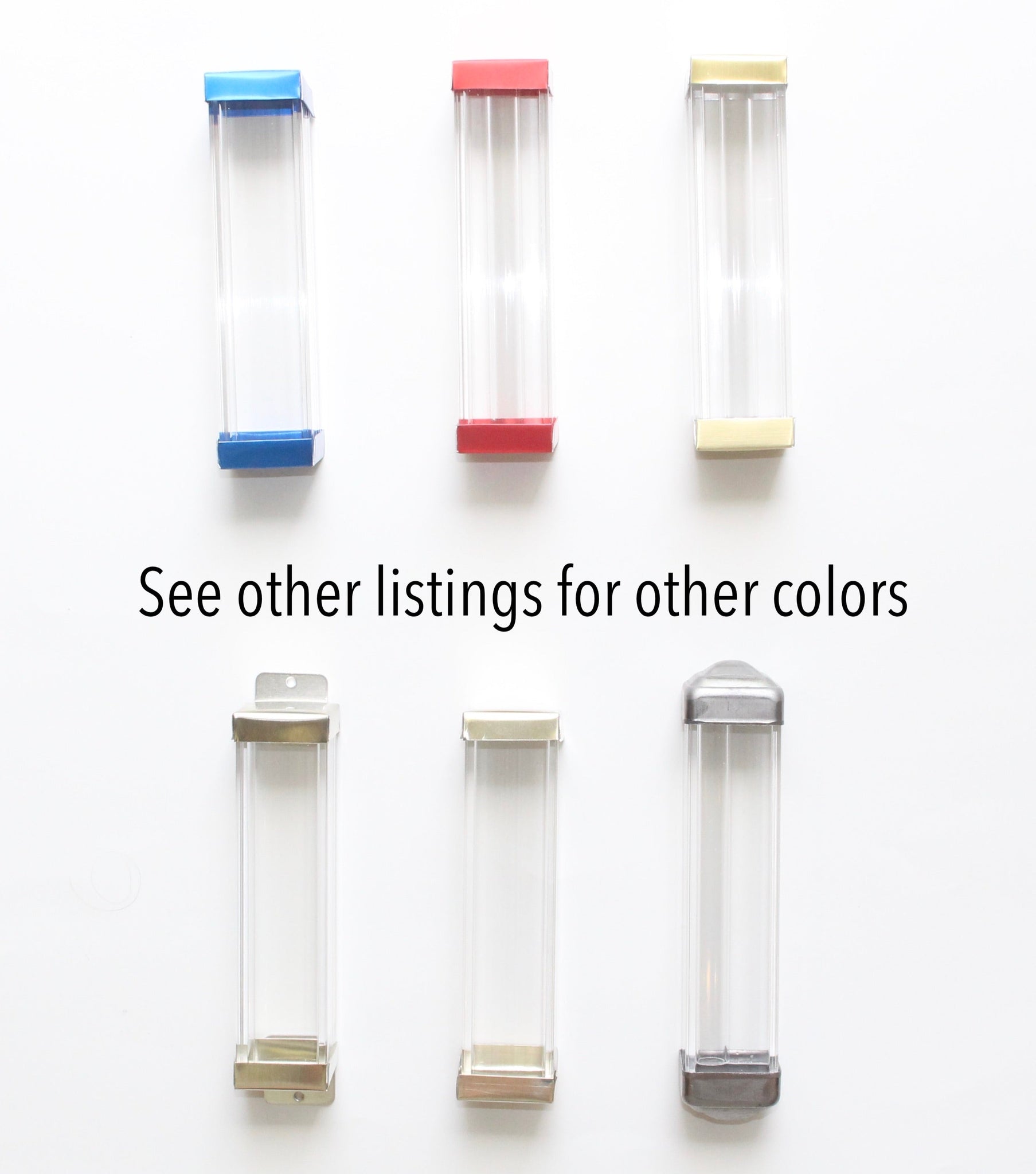 A non-kosher scroll is provided if you would like one, just put a note in the comments at checkout. The clear case material is lucite or glass depending upon the option you select. The metal end caps are made of either steel, nickel/silver, or anodized aluminum depending on the color/style. We don't use real copper or other metals like that which would really oxidize or tarnish and discolor over time. The mezuzah is adhered with an adhesive backing or with nail/screws depending on your selection.