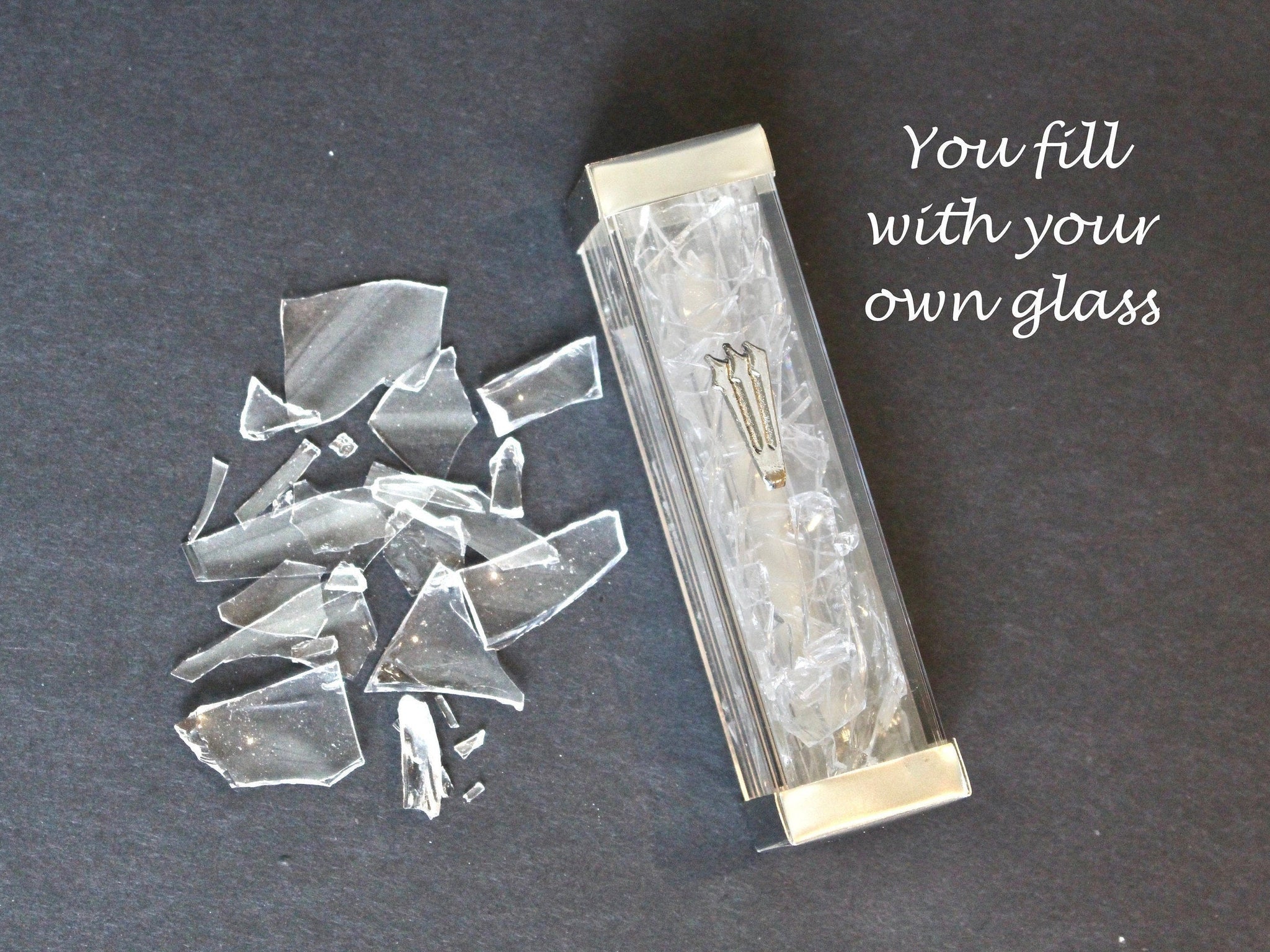 A beautiful mezuzah case you can fill with your own broken wedding glass!